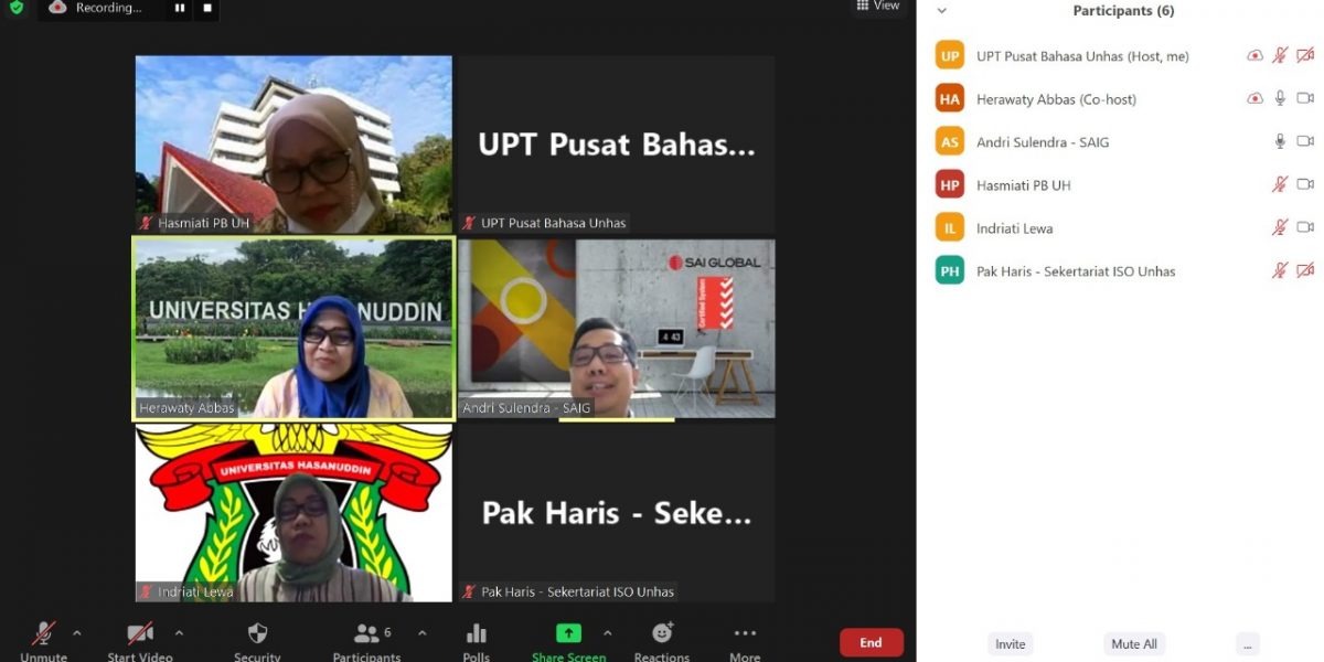 Read MoreKamis (23/9/2021), Badan Sertifikasi SGSĀ melaksanakan Audit Surveillance pada UPT Pusat Bahasa. Audit SMM ISO 9001:2015 dilakukan secara daring melalui zoom meeting dan diikuti oleh Kepala UPT, Sekretaris, dan Kasubag Pusat Bahasa. Proses audit berjalan lancar dan Pusat Bahasa tetap menunjukkan komitmen yang kuat untuk melaksanakan sistem penjaminan mutu berbasis ISO 9001:2015